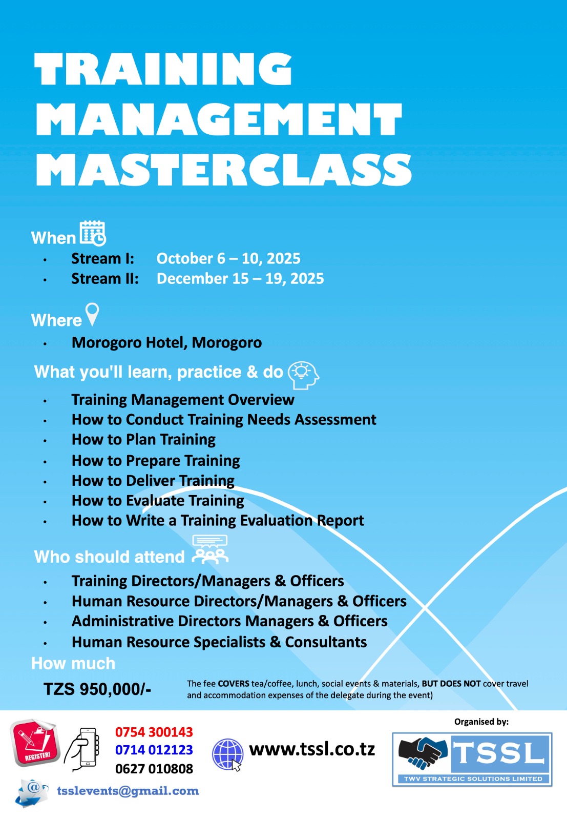 TWV Strategic Solutions Limited (TSSL) is a private Tanzanian firm established to provide demand-driven value-adding strategic solutions in training, management consultancy and research to public, private and third sector organisations in all key sectors of the national economy. Its principals have more than 50 years cumulative experience of providing first hand strategic solutions to public, private and third sector organisations.